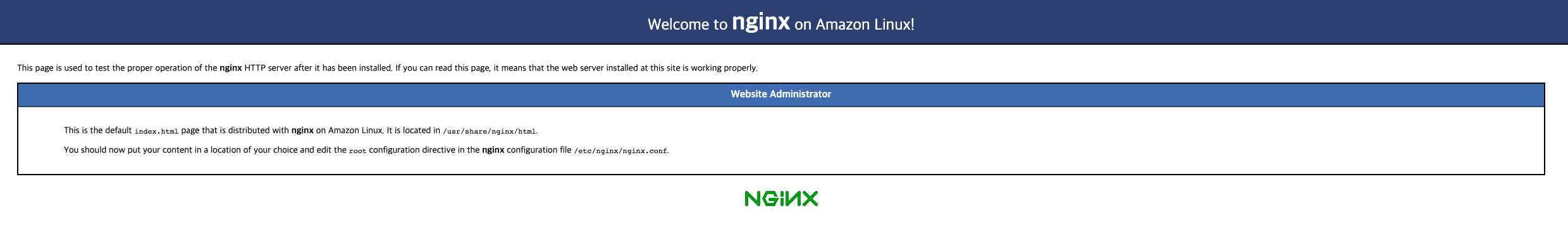 ec2주소로 접속하면 nginx가 반겨준다. 이러면 일단 설치는 성공적...